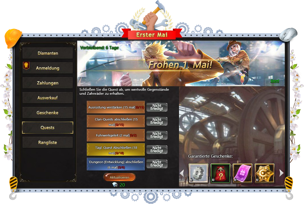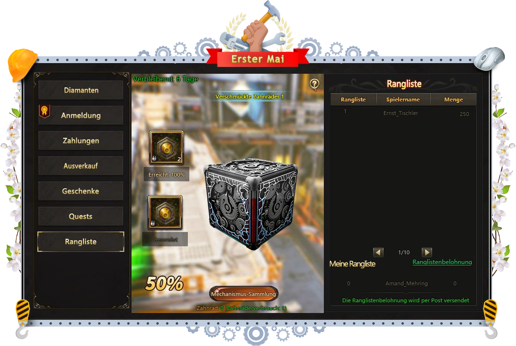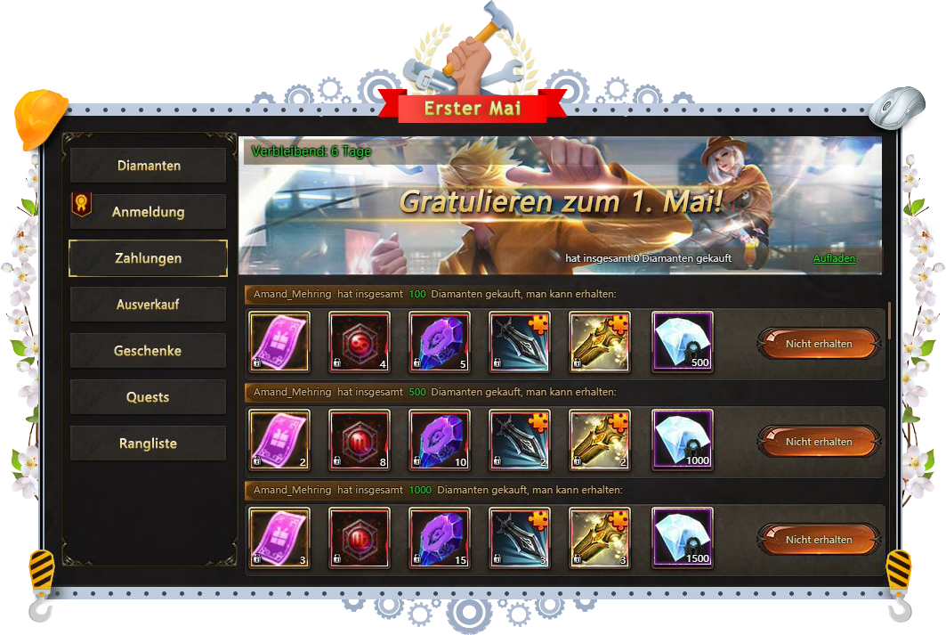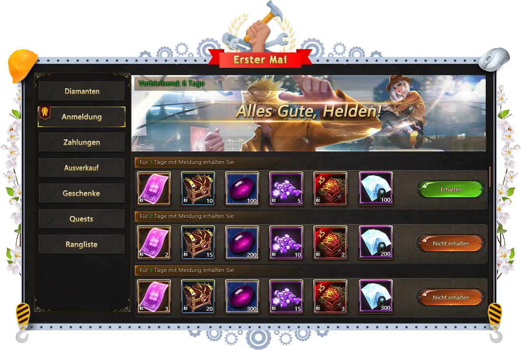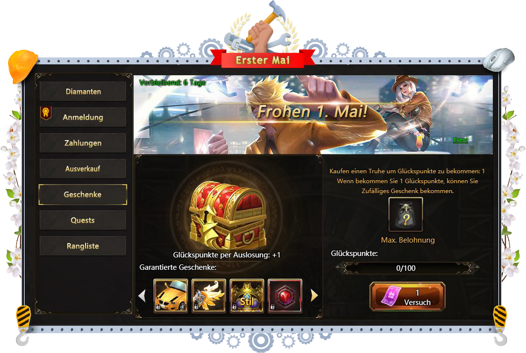 Anmeldung - besuchen Sie Tag der Arbeits Fest taglich und bekommen verschiedene Belohnungen;