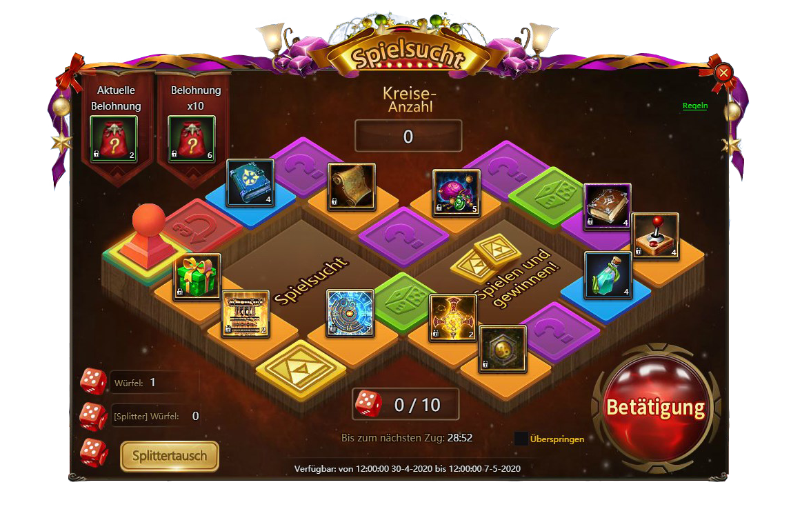 Speziale Events werden 30.04.2020 um 12:00 starten und bis 12:00 07.04.2020 dauern.