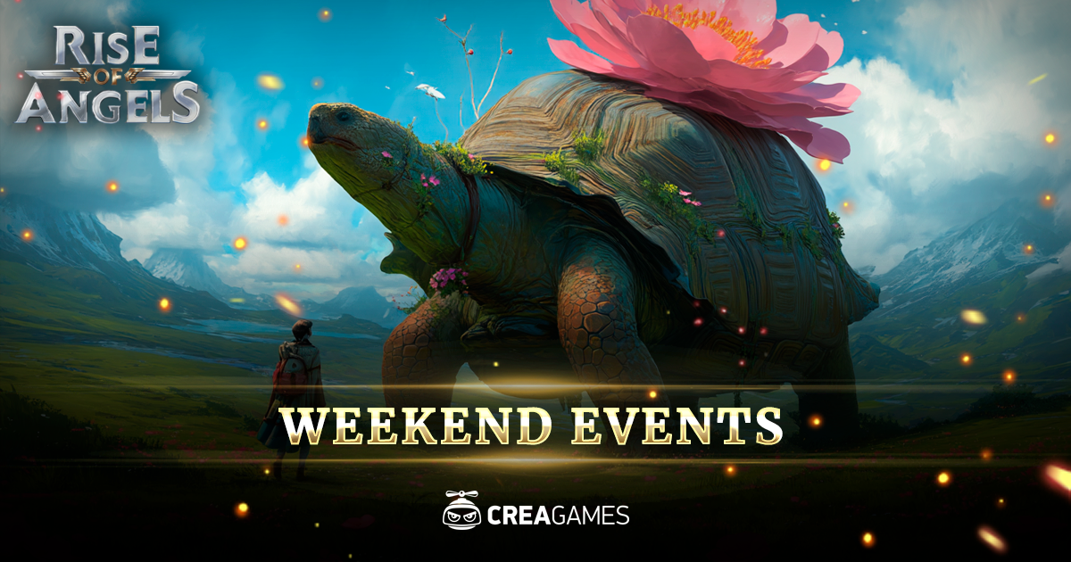 Have you ever seen giant tortoises? What about giant tortoises with a giant flower on their back? Or giant tortoises with a flower on their back, hurrying off to a date? Yep, such creatures really do exist! The giant tortoises of the Crescent Peninsula carefully prepare for their mating season. Several months before this event, they search for the hardiest seed of what they believe to be the most beautiful flower and toss it onto their backs. Then, for many weeks, they lovingly care for the seedling — watering it under waterfalls, sunbathing with it under the warm rays of the sun, and even softly humming melodies only tortoises can understand. All of this is done with one goal in mind: to find the perfect mate by the end of April and pair up! That’s just how it goes. But now, let’s talk about the Weekend Events in Rise of Angels