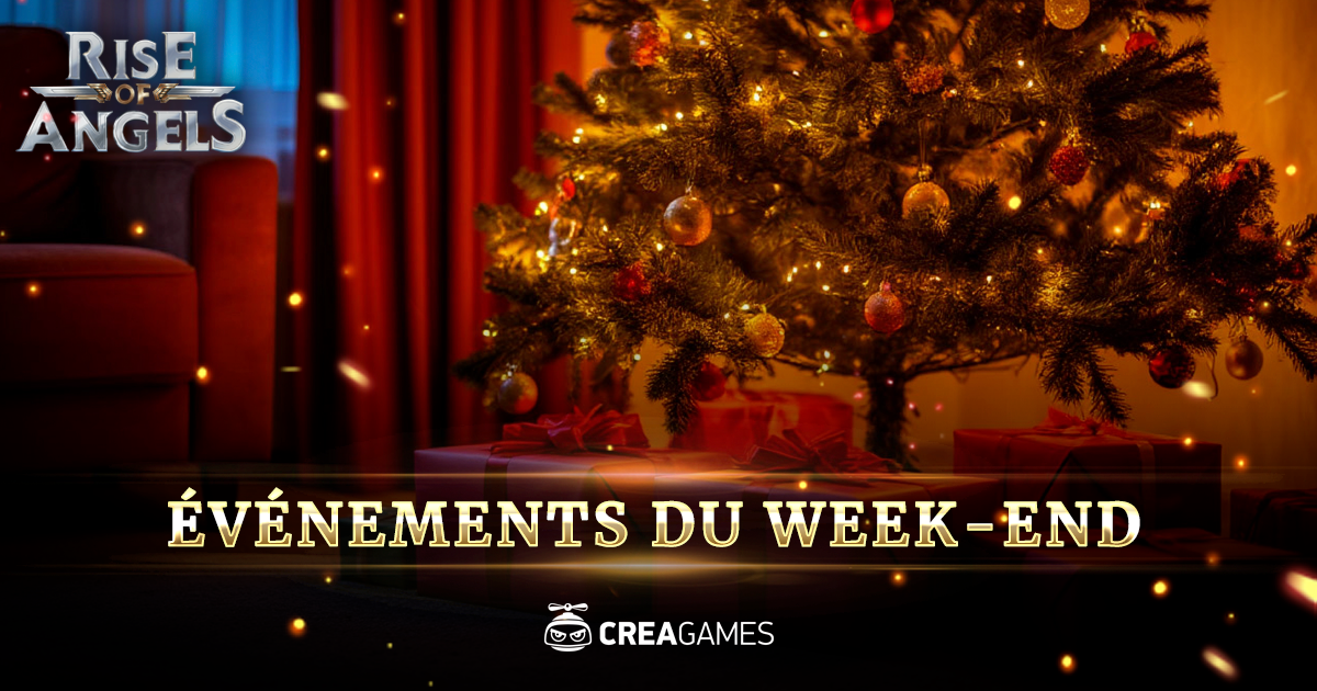 Aujourd’hui, vous vous êtes réveillé en premier. Dehors, il fait encore sombre, impossible de deviner l’heure exacte. Sur la table : des épluchures de mandarines, du champagne à moitié bu, du chocolat, un sandwich au saucisson un peu sec, des guirlandes et un cierge magique éteint… Oui, la nuit a été mouvementée. Avec une légère hésitation, vous vous levez. Le sapin de Noël, décoré de centaines de boules, clignote doucement, comme pour vous appeler. Vous tendez la main vers lui. Encore un instant, et quelque chose va se produire — un secret va être révélé. Rassemblant vos dernières forces, vous attrapez le vide… et, à votre grande surprise, saisissez un billet : « Voici la liste des événements du week-end dans Rise of Angels. »