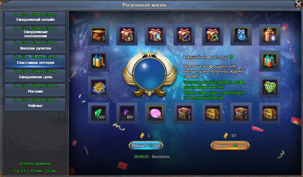 За онлайн можно получить очки события, купоны вращения, камни развития внешности, сапфиры и другие предметы. За пополнение, в лотерее и рулетке вас также будут ожидать полезные игровые ценности: красные анимы с двойными параметрами, оранжевые и красные анимы, карты таланта и многое другое. В магазине вы найдете предметы для реинкарнации, а также золотую карту таланта истребления.