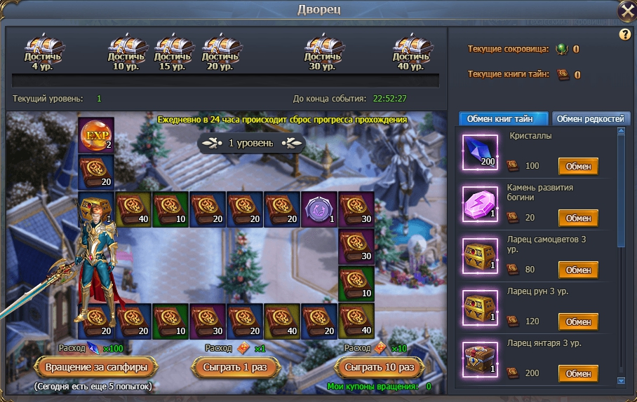 За онлайн можно получить очки события, купоны вращения, сапфиры и другие предметы. За пополнение, в лотерее и рулетке вас также будут ожидать полезные игровые ценности: красные анимы с двойными параметрами, осколки Карнавальных крыльев, карты таланта и многое другое. В магазине вы найдете предметы для реинкарнации, а также красную карту таланта истребления.