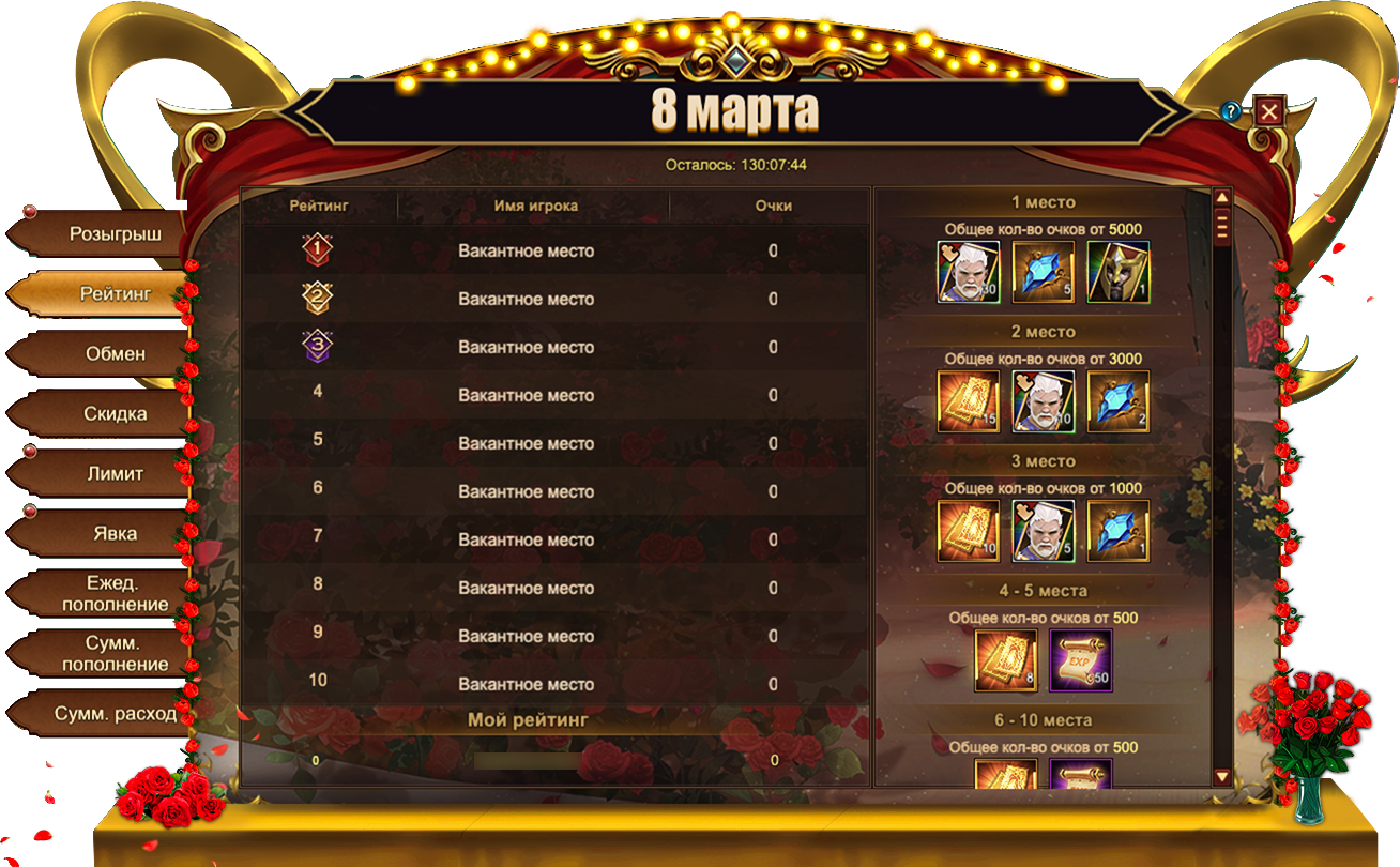 В Eternal Fury Reborn уже запущены новые тематические события — 8 Марта, которые продлятся ровно шесть дней до 10 марта включительно. Дышите полной грудью, наслаждайтесь жизнью и обязательно поздравьте милых дам — от себя лично!