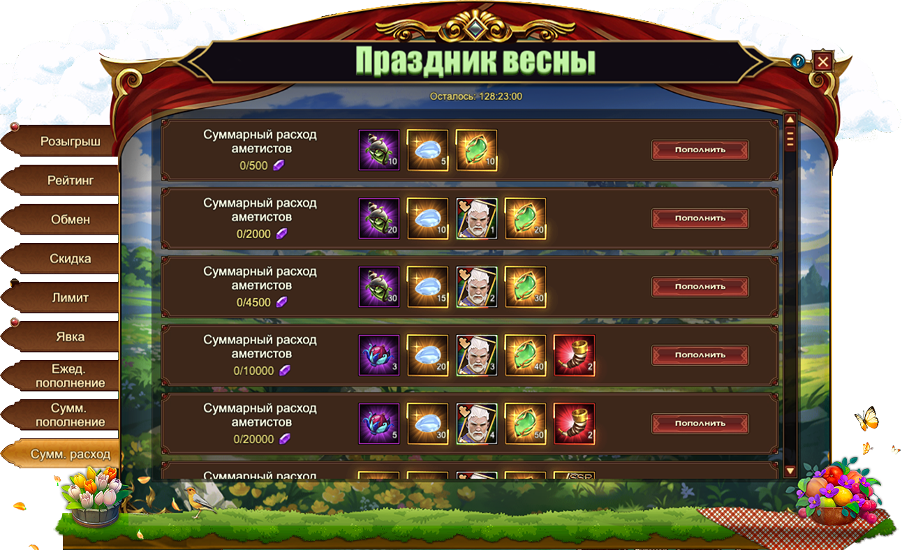 Сегодня16 марта, в Eternal Fury Reborn запущены новые тематические события — Праздник весны, которые продлятся ровно шесть дней до 21 марта включительно. Насладитесь согревающими лучами солнца, ласковым весенним ветерком и замечательными подарками!