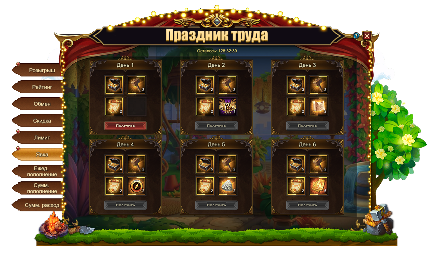 За выполнение ежедневных заданий вы тоже можете получить разнообразные ценности: Малое зелье энергииМолоток, КиянкаОсобый сундук материалов или Свиток славы.