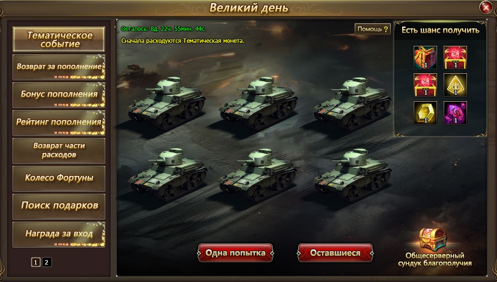 В этой новости мы расскажем о том, какие события ожидают нас уже завтра. Пожалуйста, учтите, что некоторые из ивентов, объявленных на 8 мая, начнутся только после открытия серверов по завершении тех. работ. Пополнения, совершенные 8 мая ДО технических работ, могут быть НЕ УЧТЕНЫ в игровых событиях, которые стартуют после техработ.