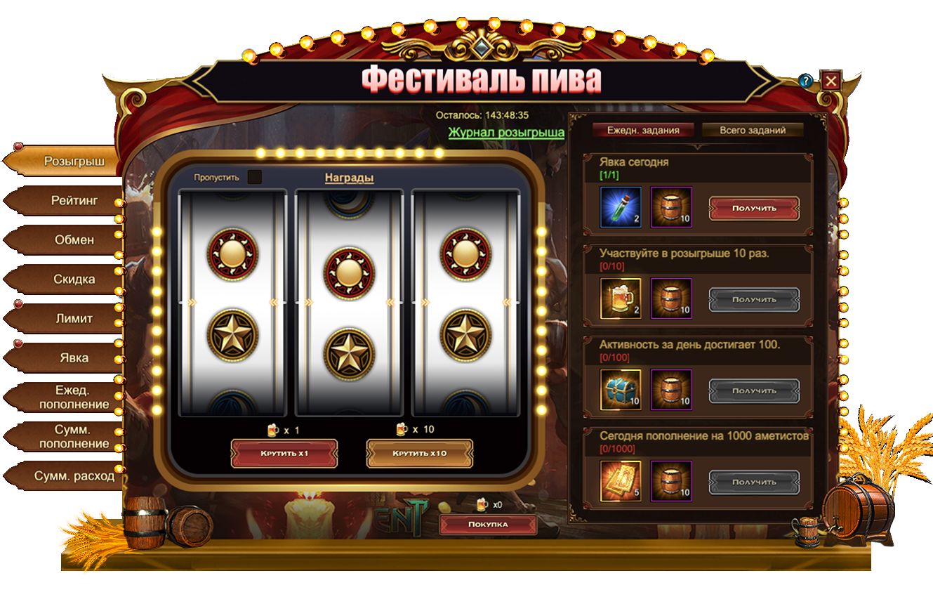 За участие в розыгрыше определенное количество раз вы также можете получить: Камень усиления герояБочонок пива и Камень повышения героя