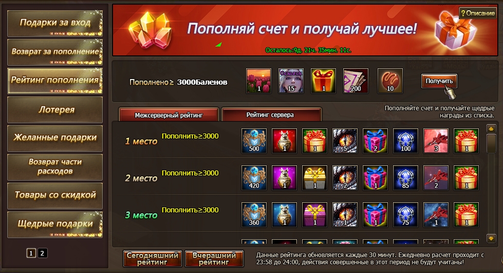 13.    С 18 по 22 сентября в Сундуках сокровищ вас ждут награды за пополнение счета от 1000 баленов.