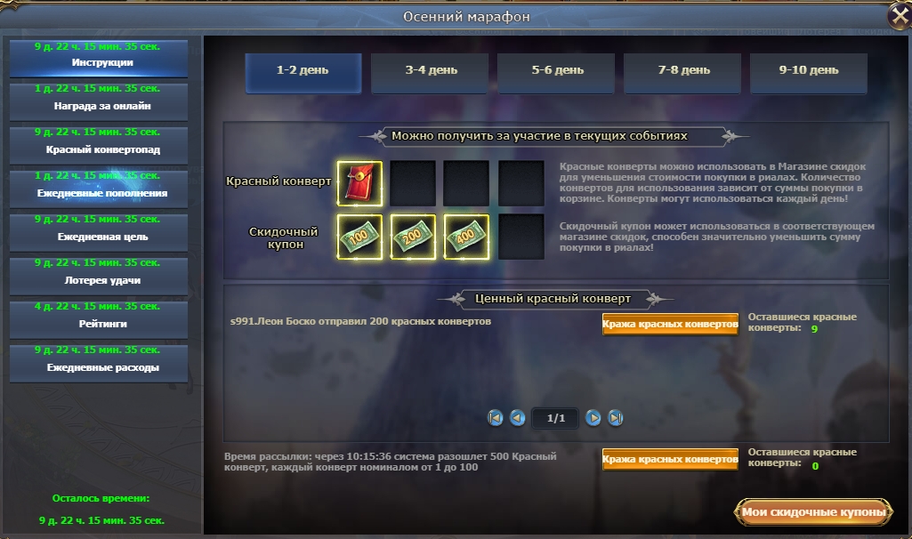 25 сентября в игре стартует событие Осенний марафон длительностью 10 дней. Щедрая распродажа для выгодных покупок ждет вас: