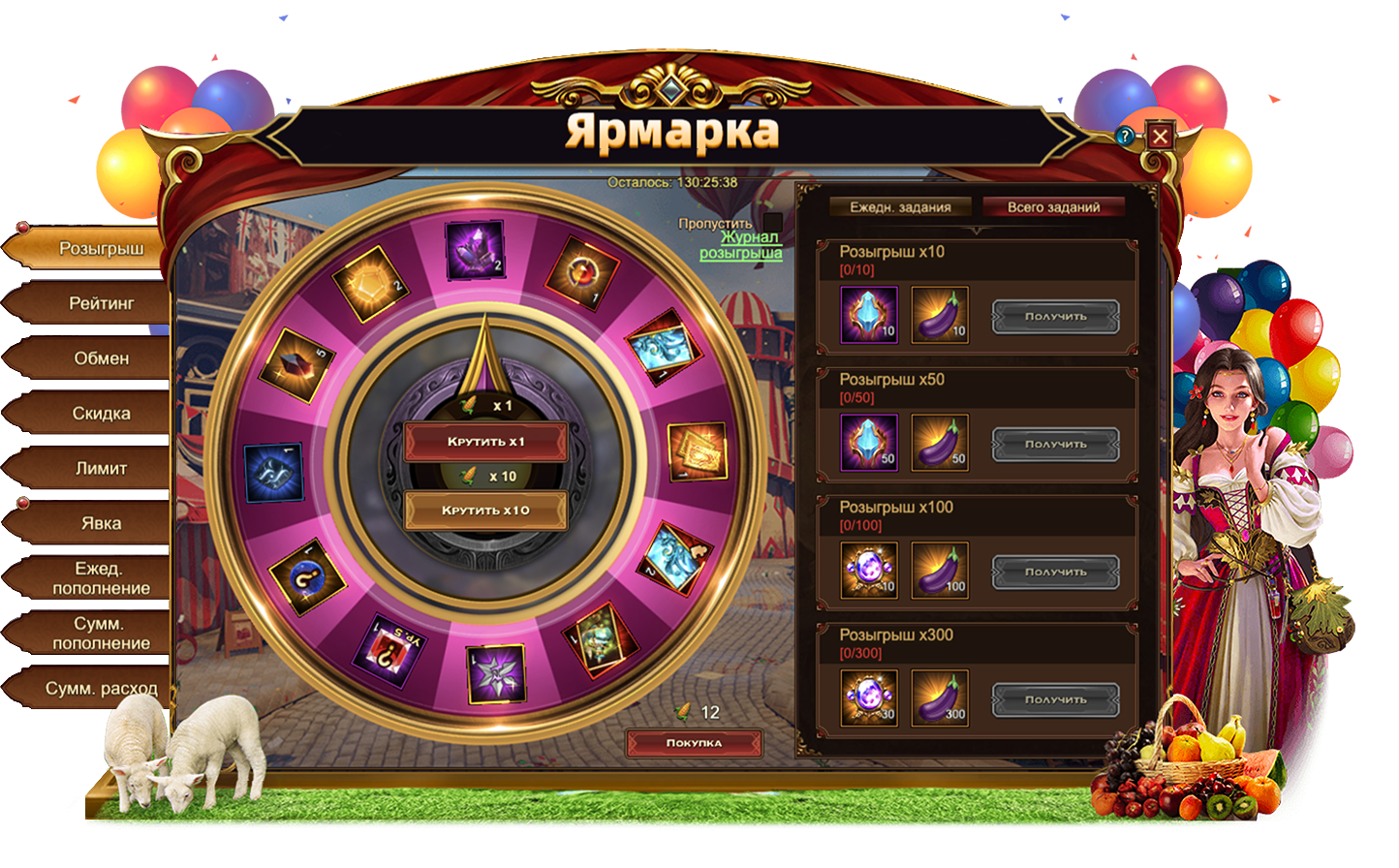 Баклажаны, собранные во время данного Фестиваля, позволяют приобрести множество интересных предметов, в том числе и эксклюзивных для данного события: [Карта] Хеймдалль, Особый титул Богатая жатва[Аватар] ФермерРамка Ярмарки[Фрагмент карты] Амфора мудрости. Если эксклюзивные предметы вас не интересуют, всегда можно обменять Баклажаны на полезные ресурсы. Например, на Камень бога землиОтличная марионетка или [Бог чести] пояс