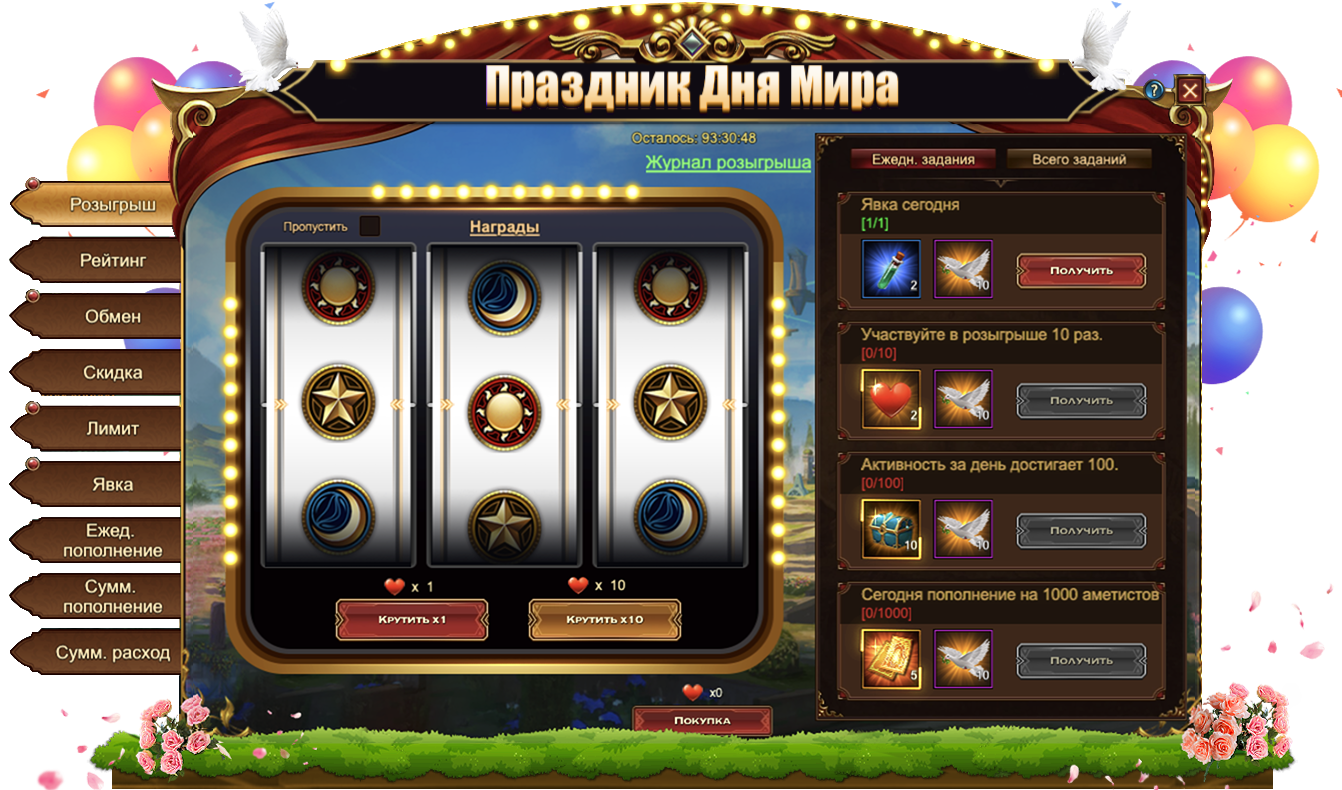 За участие в розыгрыше определенное количество раз вы также можете получить: Камень усиления герояГолубь мира и Камень повышения героя.