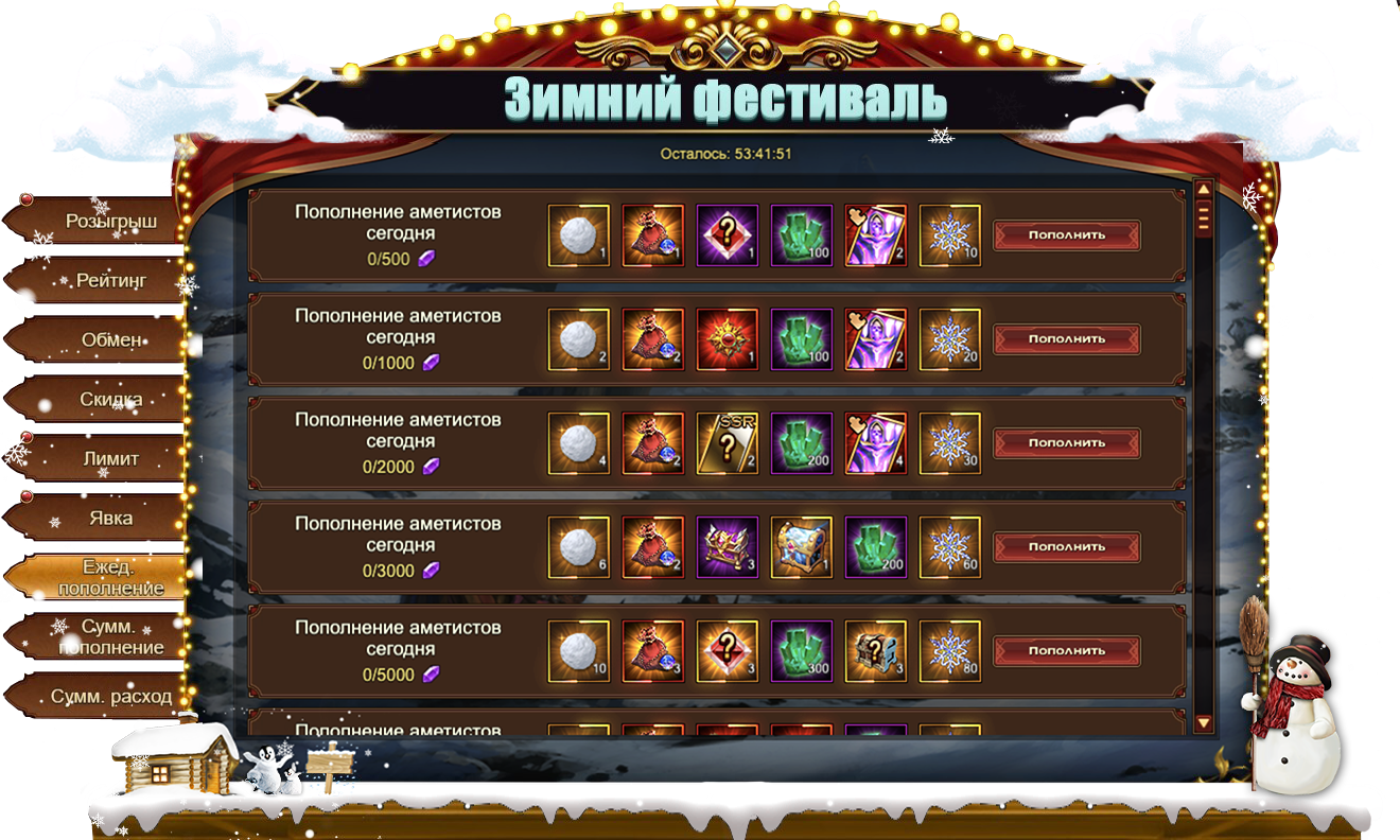 Зимний Фестиваль - Ежедневное пополнение