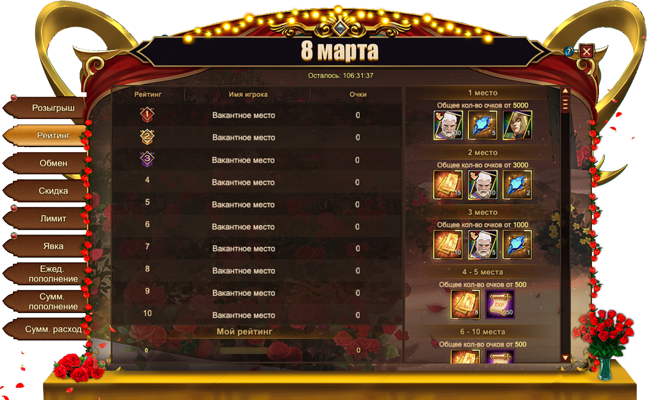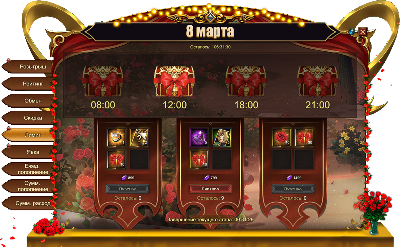 В Eternal Fury Reborn уже запущены новые тематические события — 8 Марта, которые продлятся ровно шесть дней до 10 марта включительно. Надеемся, вы уже нашли самый красивый букет цветов!