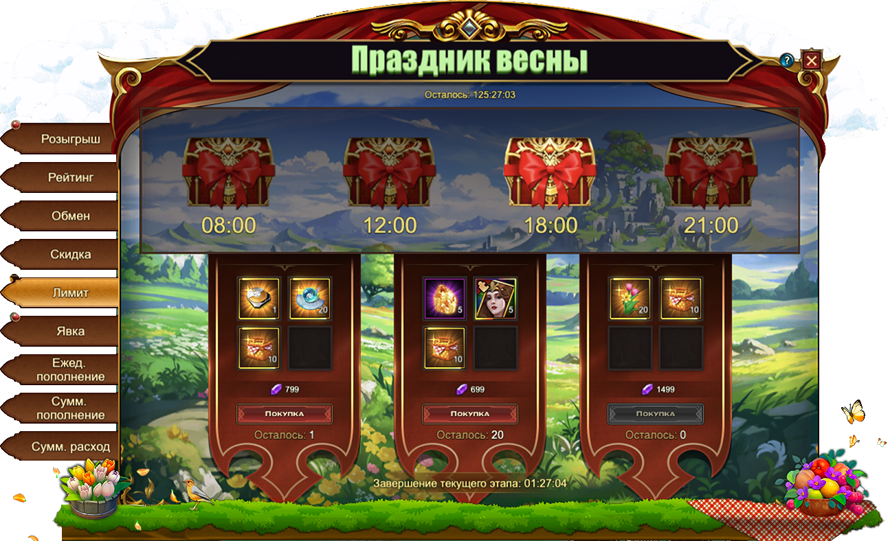 Сегодня18 марта, в Eternal Fury Reborn запущены новые тематические события — Праздник весны, которые продлятся ровно шесть дней до 23 марта включительно. Насладитесь весенним ветерком!