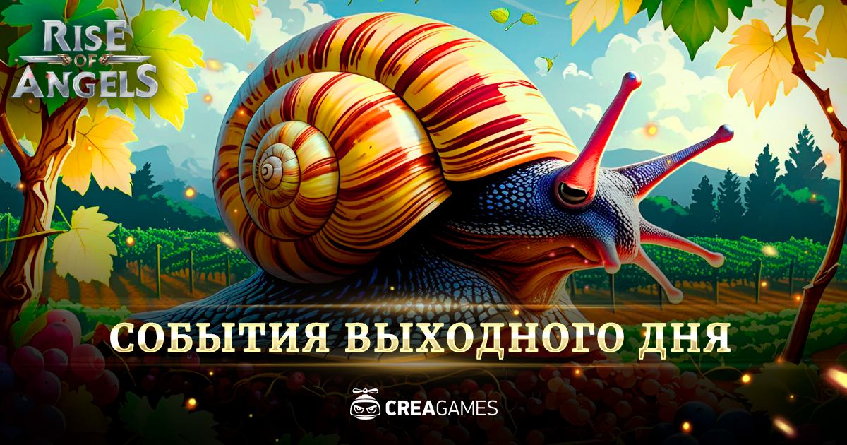 Конец лета и начало осени — самое подходящее время для сбора урожая на континенте. Где-то могучие волы и строптивые кони тянут плуги и телеги, где-то людям, эльфам, гномам и представителям других рас приходится трудиться вручную. Но в прибрежных регионах для уборки урожая задействуют гигантских улиток. Удивительно, но этих созданий интересуют не овощи и фрукты, а стебли и листья растений. Их выпускают на и поля и грядки, где улитки неспешно ползут вперед, поглощая всю зелень, но оставляя спелые плоды на земле — остается лишь собрать и хорошенько промыть урожай, чтобы привередливые покупатели не воротили носы. Теперь же давайте поговорим о событиях выходного дня в Rise of Angels!