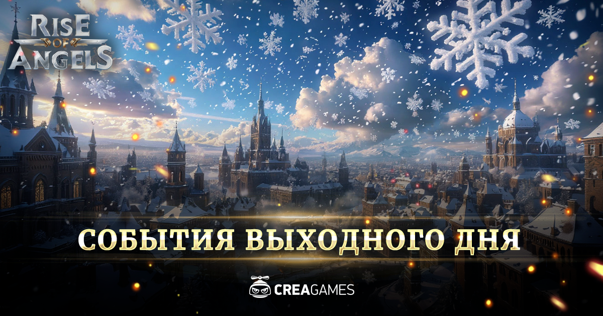 Зимой нет зрелища более завораживающего и чарующего, чем танец падающего на землю снега. Но вы когда-нибудь видели гигантские снежинки? Не обычные, а огромные, размером с кота, человека или даже лошадь? Поговаривают, такие снежинки образуются высоко в небе, когда силы природы и магии сливаются воедино. Древнейший узор мироздания отпечатывается во льдах и снегах, порождая настоящий шедевр. К сожалению или к счастью, но эти снежинки редко добираются до земли. Однако во время самых суровых снегопадов порой удается разглядеть что-то огромное и невесомое, танцующее среди облаков и снежинок поменьше. Впрочем, теперь давайте поговорим о событиях выходного дня в Rise of Angels!